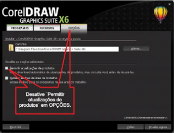 quando for instalar o CorelDraw X5, X6 ou X7